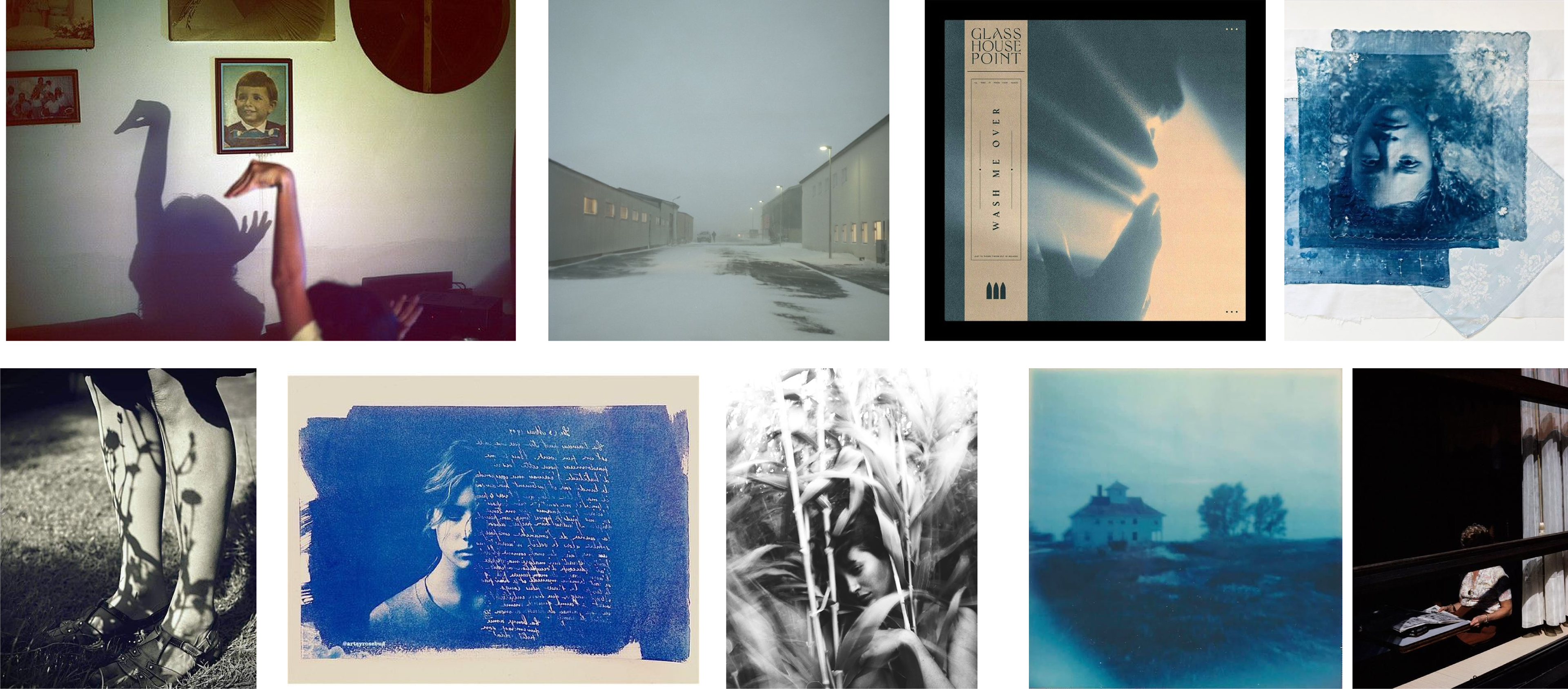 Recreation of the vinyl design Carrie and Lowell by Sufjan Stevens using captivating photo design that captures the tone and themes of the record. The cyanotype process was chosen for the album's recreation to emphasize the themes of nostalgia and childhood present in the record. The monochromatic blue and weary effect that cyanotyping has on imagery also helps communicate the feelings of grief and melancholy in the music and lyrics.
