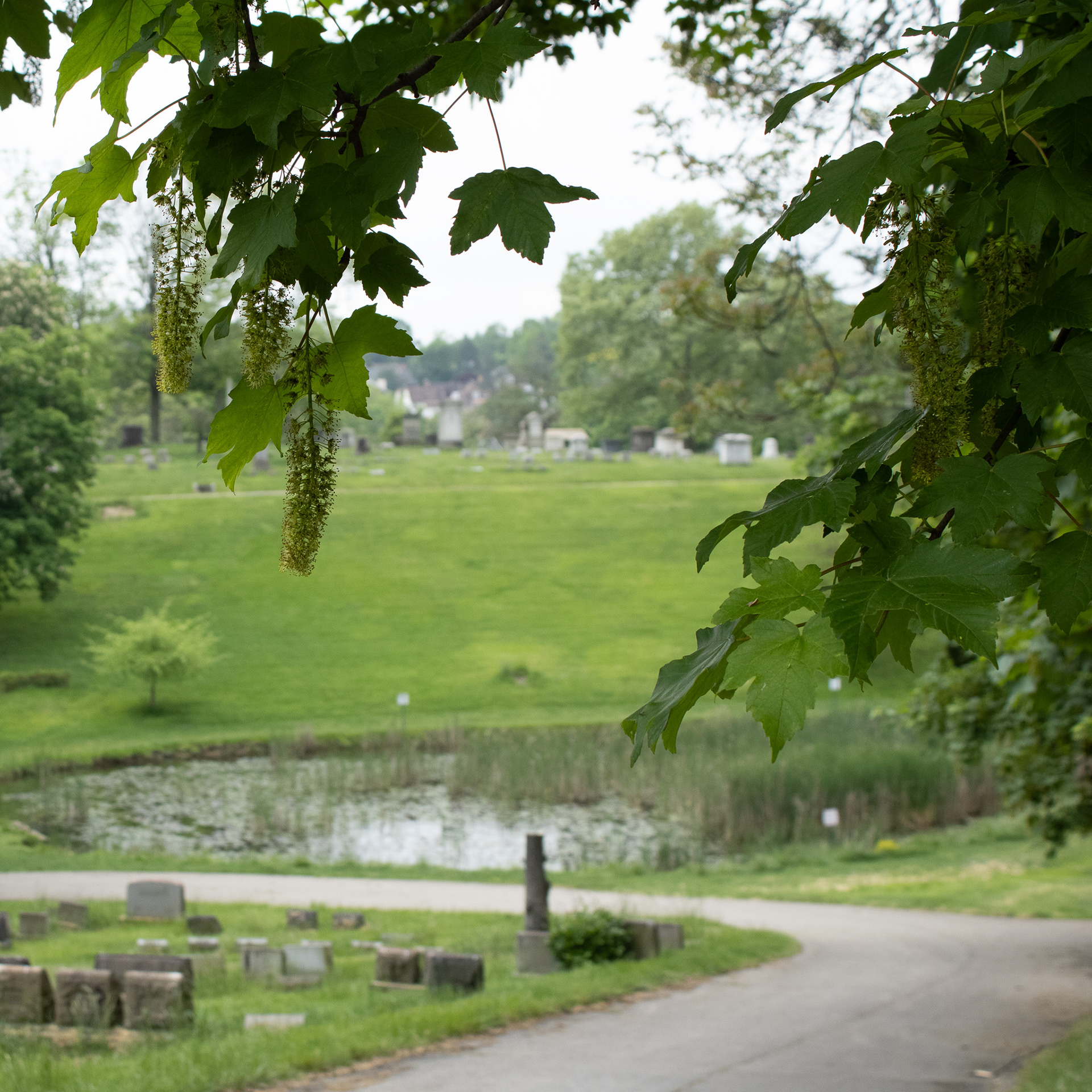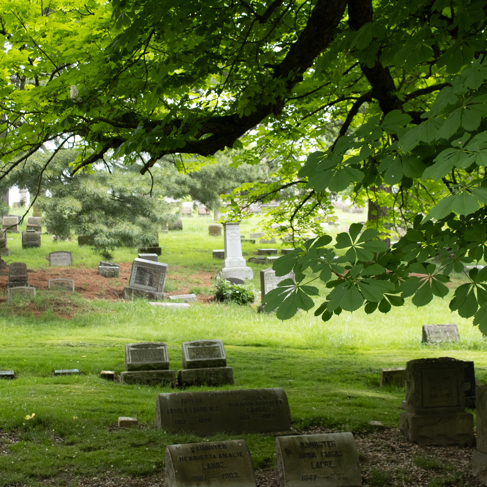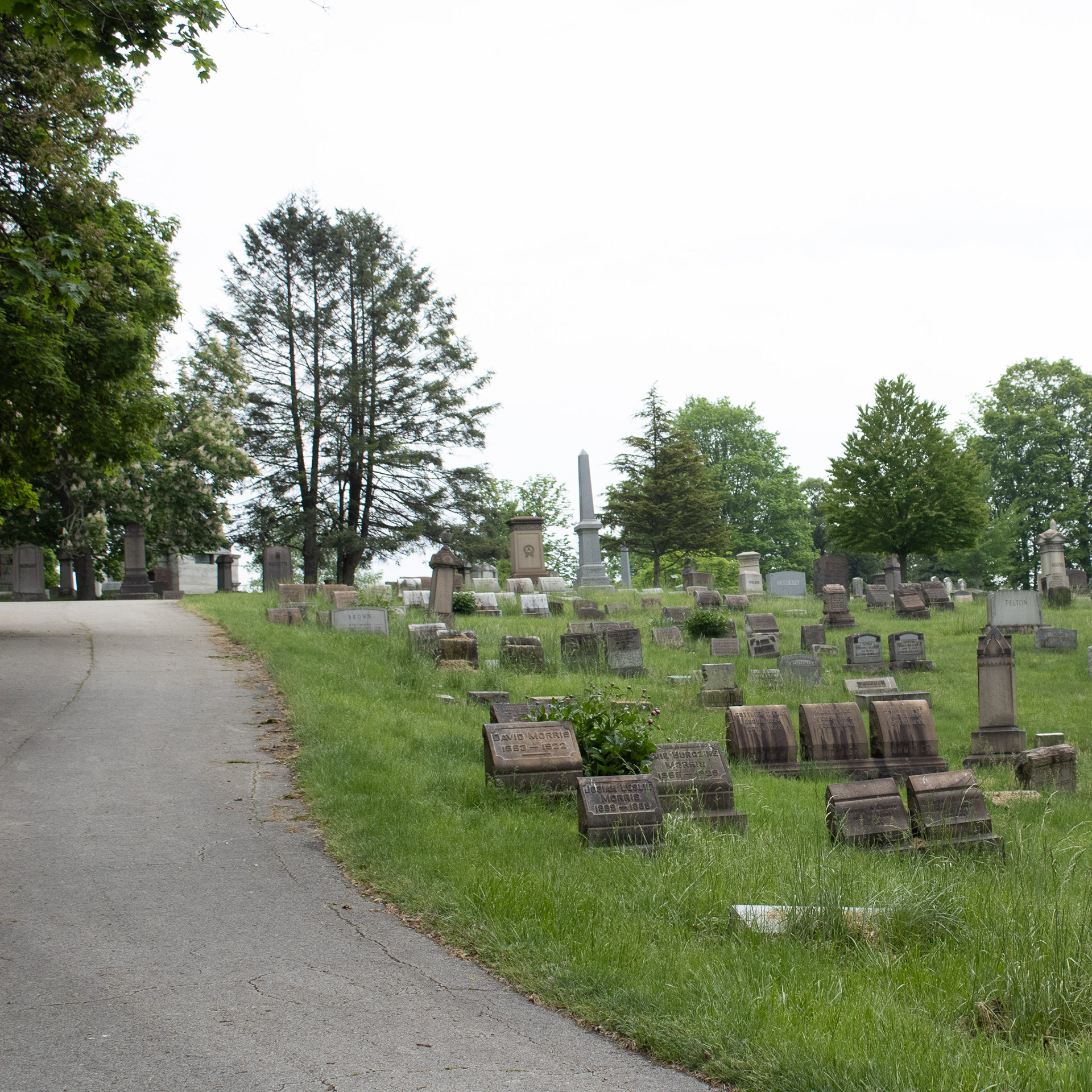These images were taken at the Homewood Cemetery in Pittsburgh, Pennsylvania. The juxtaposition of the tombstones surrounded by greenery and animals relates to the themes of sitting with life and death in the record.