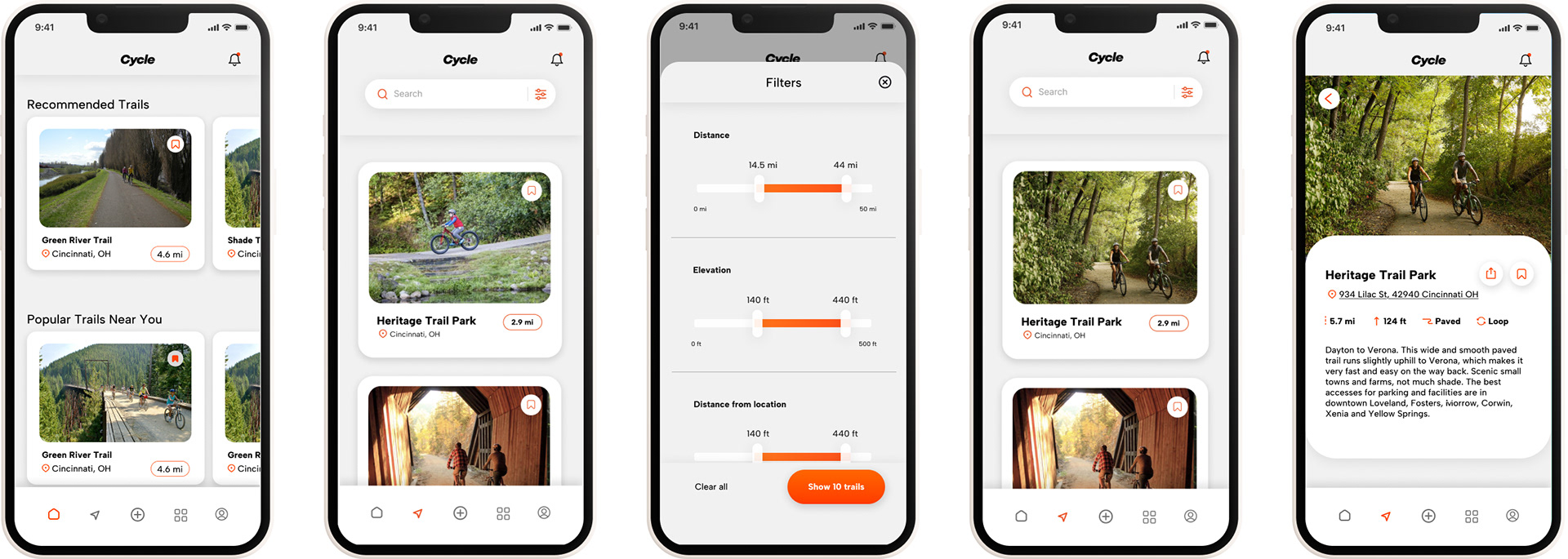 It is challenging to find bike trails, especially in new places. It is hard to find a biking community. Cycle is an app for all cyclists, regardless of skill level. Cycle allows users to filter and search for bike trails. They can record rides, review stats, and participate in challenges. Additionally, users can follow friends, join groups, and share rides with others.
