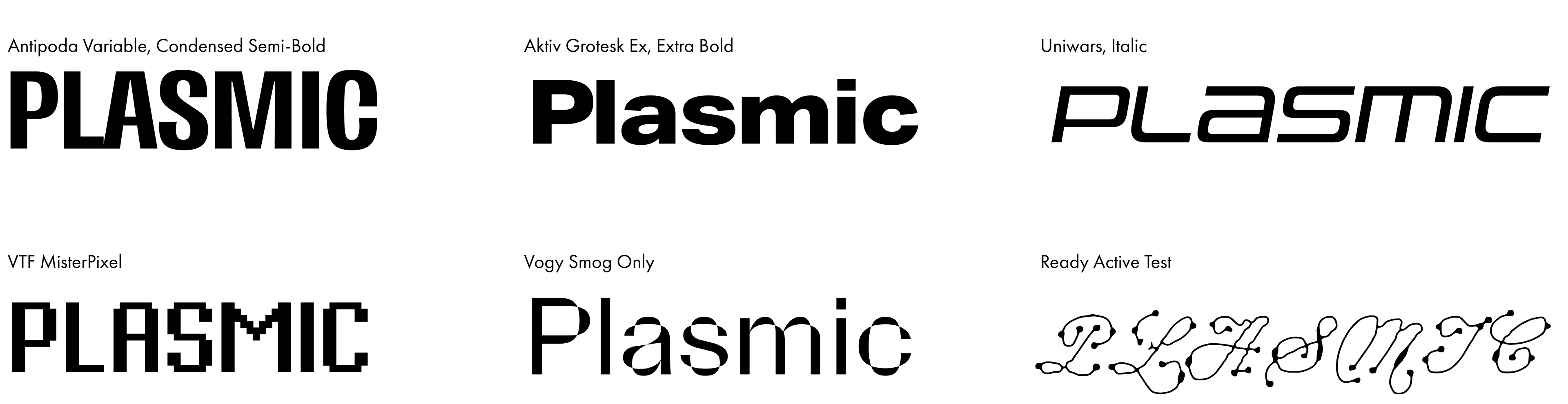 While developing the wordmark for the publication, a range of fonts was compiled that represented the futuristic, technological, and ethereal characteristics of hyper-pop. These fonts served as the basis for the wordmark, as they would be modified individually.