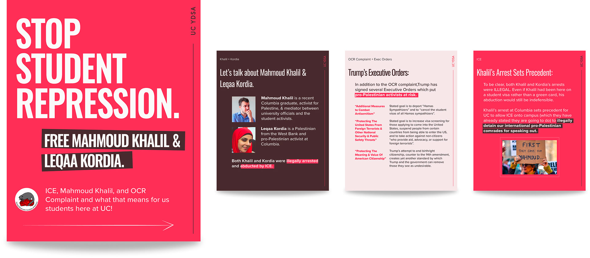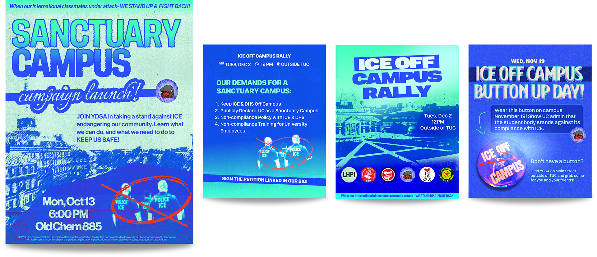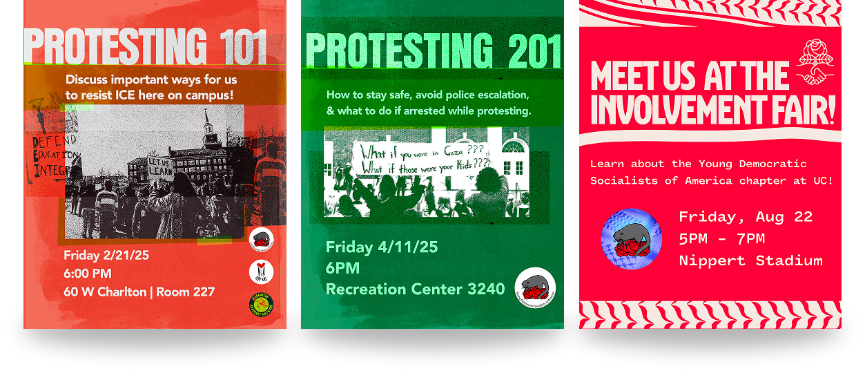 Young Democratic Socialists of America fights for democratic socialism through active campaigns to improve the lives of working people. As the co-chair of the Art & Design Committee, I spearhead social media material, posters, buttons, & other design deliverables to advance our campaigns and grow membership.